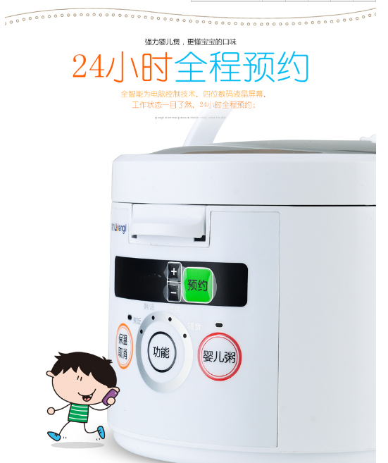 行業(yè)內(nèi)首臺(tái)嬰幼兒電飯煲,智能操控4月大至3歲嬰幼兒的輔食、寶寶粥、蛋糕……它,小巧玲瓏,易拿易放……它,24小時(shí)任意預(yù)約,隨便怎么睡懶覺(jué)都行……它,對(duì)BB粥的烹飪程度可達(dá)棉花一樣柔軟,被稱(chēng)為首臺(tái)嬰幼兒電飯煲……在生活中,它會(huì)給您帶來(lái)最安