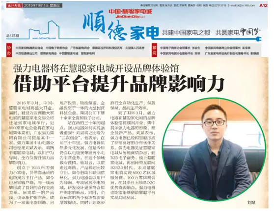 近日廣東強(qiáng)力集團(tuán)有限公司受慧聰家電城邀約,正式進(jìn)駐順德慧聰家電城品牌體驗(yàn)專(zhuān)區(qū),計(jì)劃在年底正式開(kāi)設(shè)“強(qiáng)力”品牌體驗(yàn)館,借此進(jìn)一步加速“強(qiáng)力”品牌在線下銷(xiāo)售的渠道建設(shè),同時(shí)利用該窗口展現(xiàn)“強(qiáng)力”品牌的綜合企業(yè)實(shí)力。 諸多當(dāng)?shù)孛襟w對(duì)廣東強(qiáng)力集團(tuán)